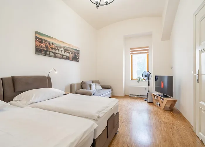 Bu daire Prag'a 900 metre ve Namesti Republiky metro istasyonuna 150 metre uzaklıktadır. Hybernia Theatre yakın bulunur ve Prag Kalesi 2 km uzaklıktadır. Yoğun bir günün ardından yemek pişirmek istemiyorsanız, daireye 300 metre uzaklıktaki Restaurace Plzenka restoranında Çek mutfağı servis edilmektedir. Daire, St. Vitus Katedrali'den kısa sürüş mesafesinde yer almaktadır.
